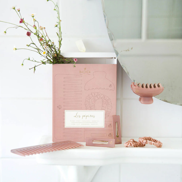 Découvrez l'élégance intemporelle du coffret Les Pépites Bois de Rose, pour sublimer vos cheveux avec style, grâce aux accessoires bois de rose.